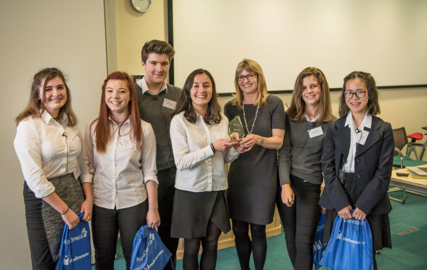 The Challenge Project ended with each student preparing a 10-15 minute video or presentation to answer the specific challenge question posed, sharing this with their classmates and UTC Cambridge staff. A final, prize-giving ceremony was held at the end of April, at which the students who had created the six best presentations shared their work with an invited audience of MedImmune’s senior scientists who then selected an overall winner to receive the ‘2016 Challenge Project’ trophy.